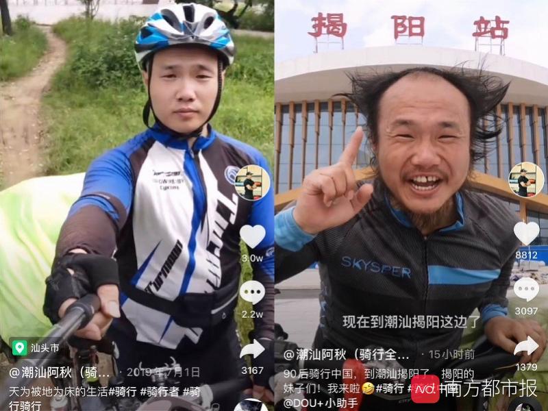 “大家好,我是90后阿秋!”15个月的骑行旅途,让他的皮肤变得黝黑,头发和胡须也疏于打理,一度被网友调侃称长得像“50后大叔”“60后他爹”,而在他自己的短视频平台,阿秋则常常在开场就挤着抬头纹扯着嗓子对镜头强调自己是“90后”。