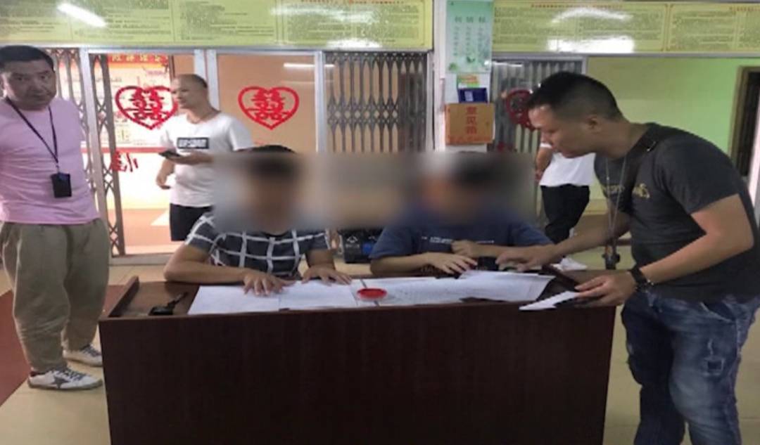 按理说,证婚人与新人合影很正常,但在照片上,这两名证婚人胸前挂的名牌竟是警官证。这到底是怎么回事? 原来,新郎韦某的身份是广东深圳一系列跨市盗窃案的其中一名嫌疑人,自首时他请求民警允许让他先办理结婚登记。