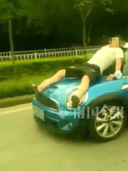 为了拦住房东讨要说法,他在情急之下坐到了房东的汽车引擎盖上,但是房东却毫不理会,照样启动车子开上马路,从城中区的桂中派出所一直开到了柳北区的杨柳郡小区。
