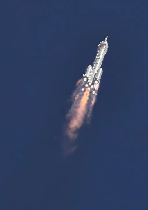 ↑据中国载人航天工程办公室消息,北京时间2022年6月5日10时44分,搭载神舟十四号载人飞船的长征二号F遥十四运载火箭在酒泉卫星发射中心点火发射,约577秒后,神舟十四号载人飞船与火箭成功分离,进入预定轨道,飞行乘组状态良好,发射取得圆满成功。新华社记者 李刚 摄