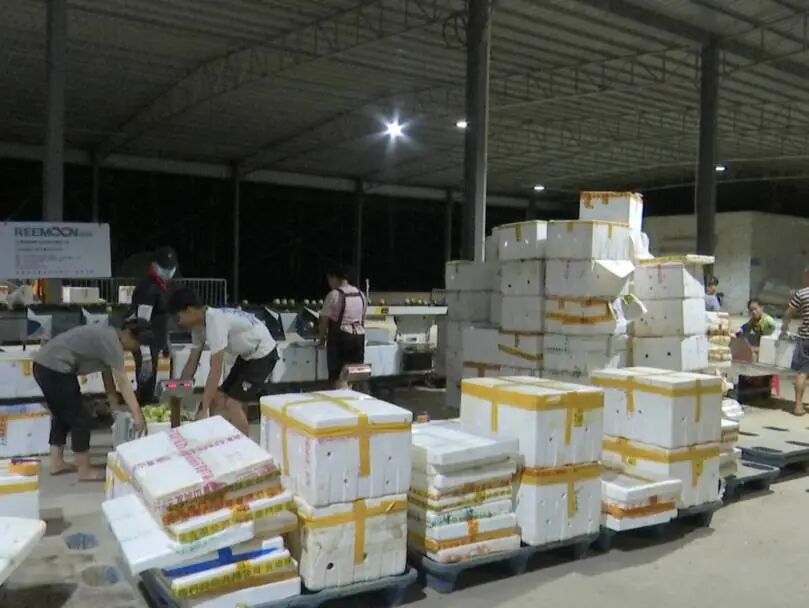 我们这个基地开始采摘是从7月1号开始,现在的采摘量每天大概是5万斤左右,采摘高峰期大概在7月20号左右,那时的采摘量大概可以达到每天15到20万斤左右。现在都销往广州、深圳、上海(等地),我们是有客商来这边采购的,现在这个量是供不应求的。